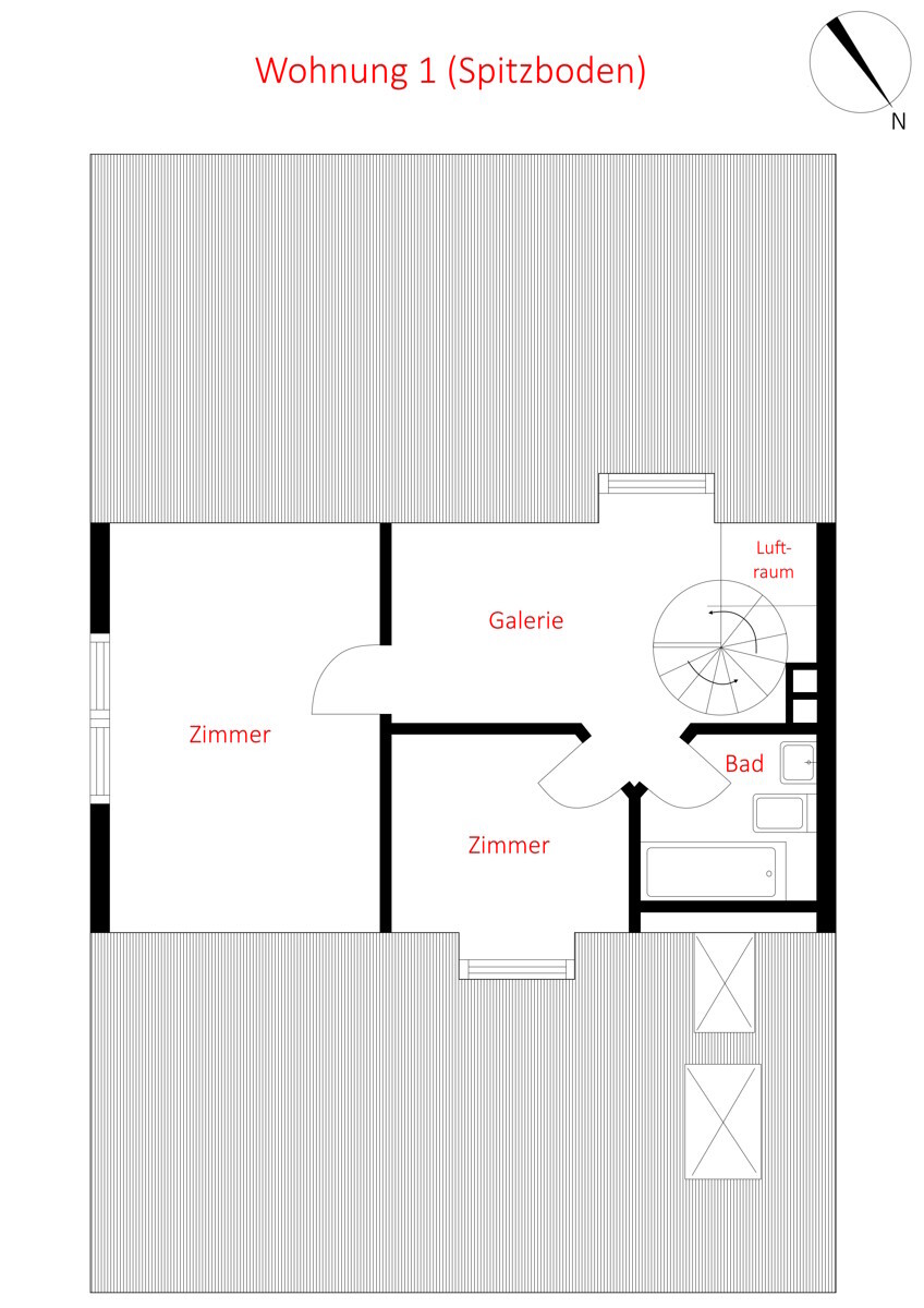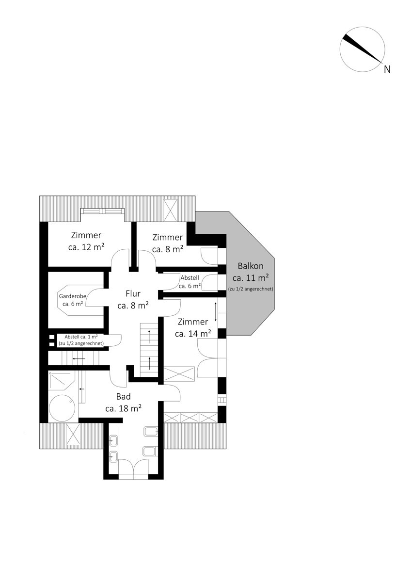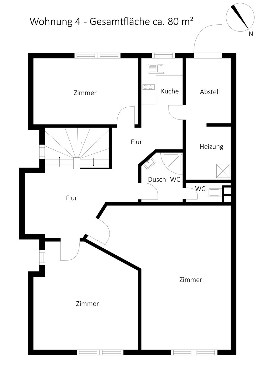 - Wohnung 4: 80 m², 3 Zimmer, Duschbad