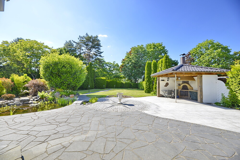 - Gut eingewachsener, großzügiger Garten mit Gartenhaus und Grillplatz