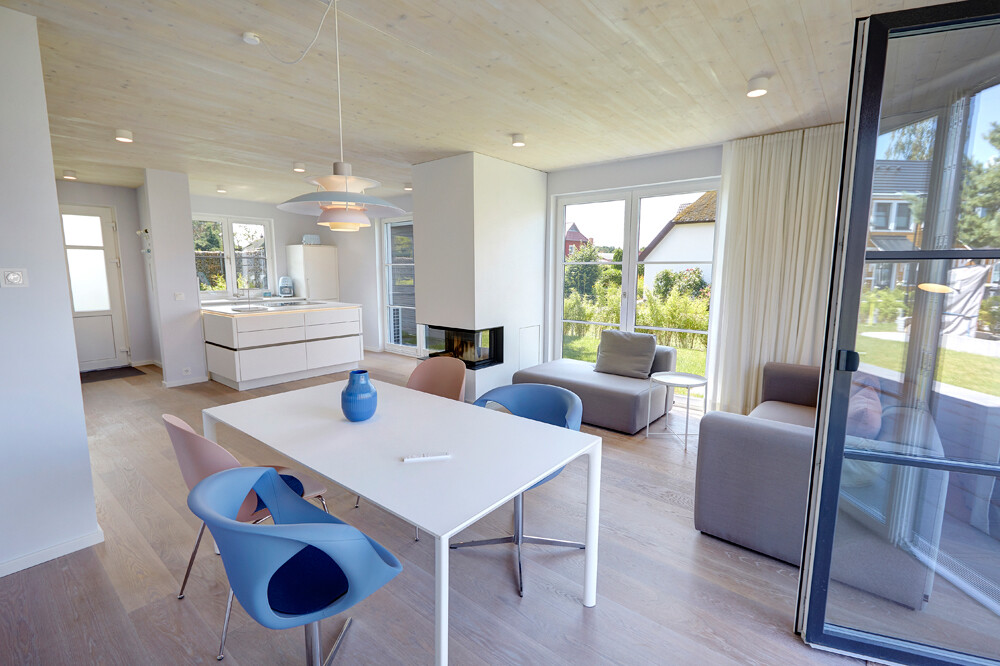Das Erdgeschoss empfängt Sie als ein weiter Raum, unterteilt in „offene Küche„, Essbereich und "Cozy - Couch Landschaft".