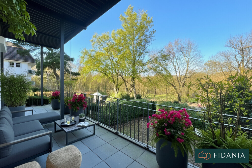 Ein Balkon und zwei separate Terrassen erweitern den Wohnraum ins Freie. Hier genießen Sie sonnige Stunden und einen besonderen Blick ins Grüne. Der angrenzende Gemeinschaftsgarten bietet zudem direkten Zugang zum Alsterlauf. Eine Lage, die Lebensqualität auf höchstem Niveau verspricht.