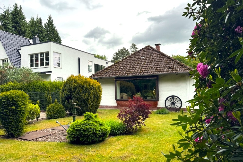 Das Grundstück befindet sich im beliebten Hamburger Stadtteil Bergstedt, einem Teil des begehrten Alstertals im grünen Nordosten der Hansestadt. Die Lage am Wohldorfer Damm vereint naturnahes Wohnen mit einer hervorragenden Infrastruktur.Die direkte Umgebung ist geprägt von gepflegten Einfamilien- und Doppelhäusern, alten Baumbeständen und ruhigen Seitenstraßen. Zahlreiche Naherholungsgebiete, wie der Wohldorfer Wald, das Naturschutzgebiet Rodenbeker Quellental sowie das Alstertal, laden zu ausgedehnten Spaziergängen, Fahrradtouren oder Freizeitaktivitäten im Grünen ein.