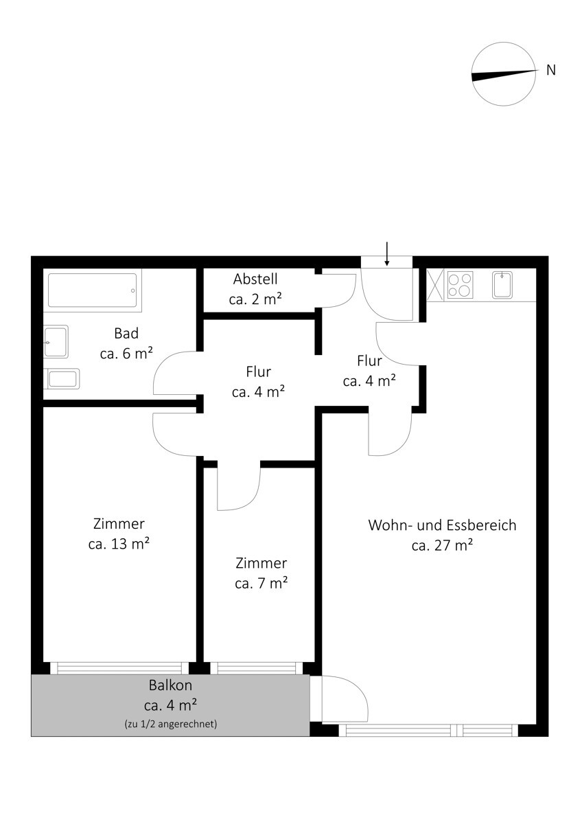 Die ca. 65 m² Wohnfläche verteilen sich auf den großzügigen Wohn- und Essbereich mit Pantry Küche, von der der nach Osten gerichtete Balkon abgeht, die 2 Schlafzimmer und das innenliegende komfortable Badezimmer (mit Waschmaschinenanschluss). Gleich rechts vom Eingang befindet sich zusätzlich ein praktischer Abstellraum.