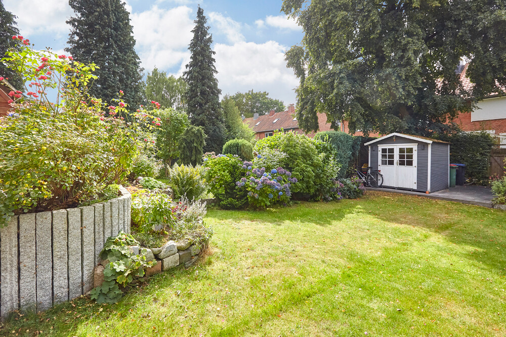 Der Außenbereich überzeugt ebenso. Terrasse, Garten und Eingangsbereich wurden sorgfältig gepflegt. Ein solides Gartenhaus ergänzt das Angebot. Darüber hinaus besteht die Möglichkeit, in der Straße Stellplätze anzumieten, was die Alltagstauglichkeit abrundet.