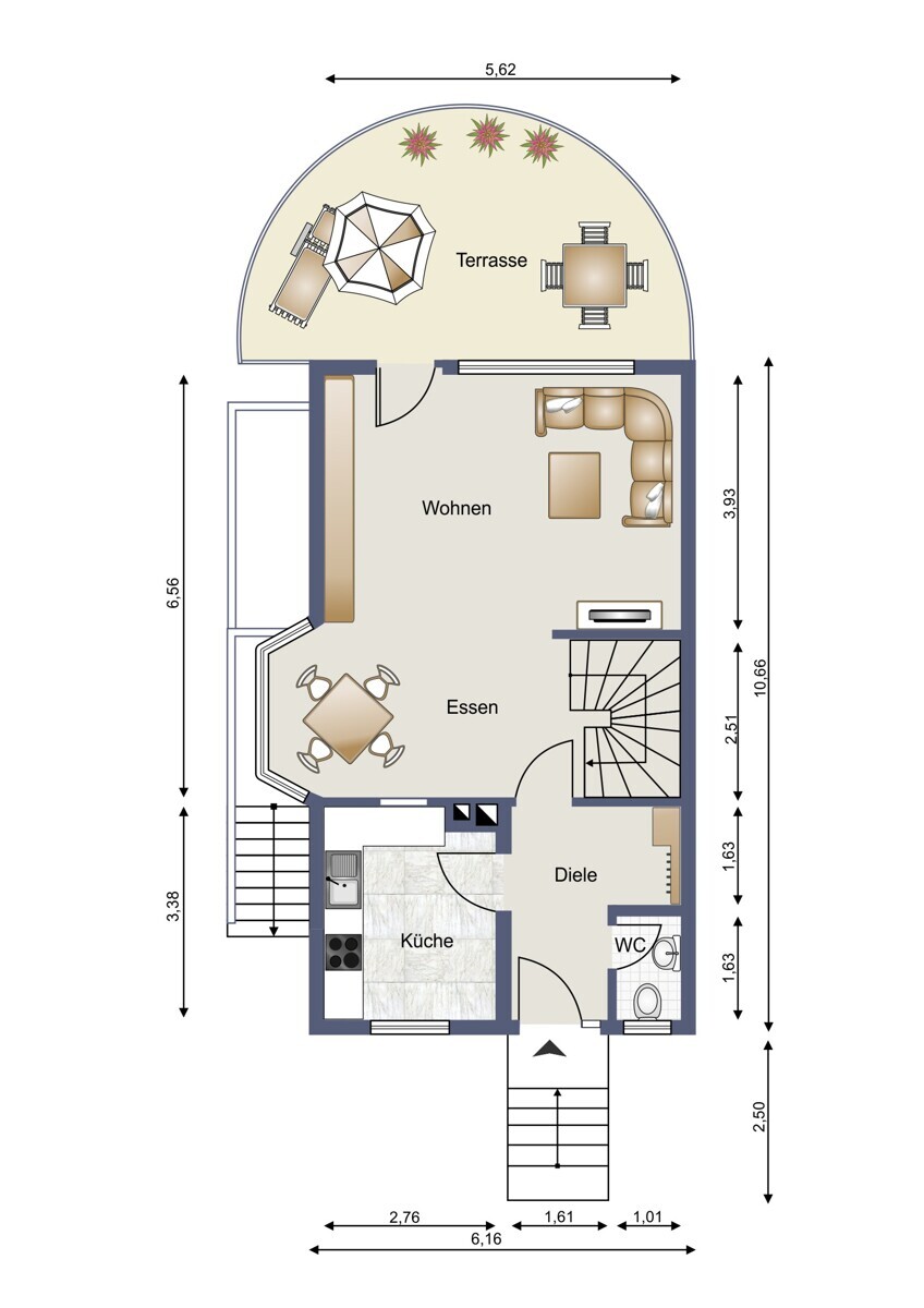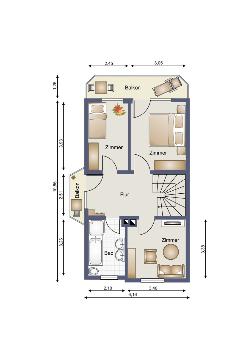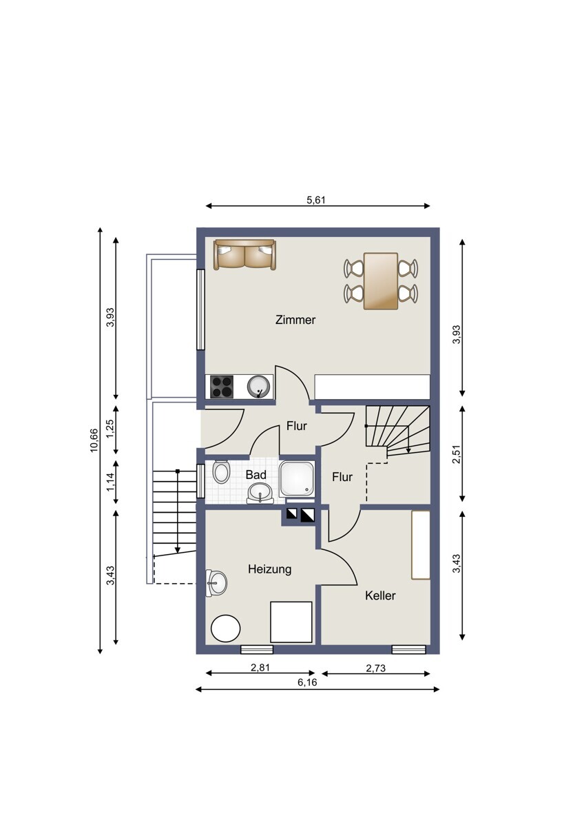 - Bäder: Gäste-WC im EG, Dusch-und Wannenbad im OG, Wannenbad im DG