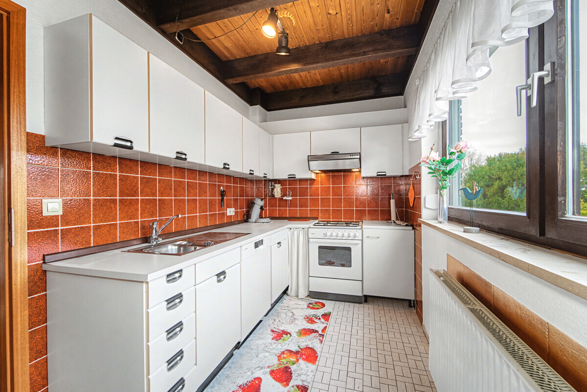 Küche: Einbauküche vorhanden, Gasanschluss für Profi-Herd liegt bereit.